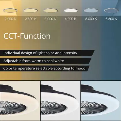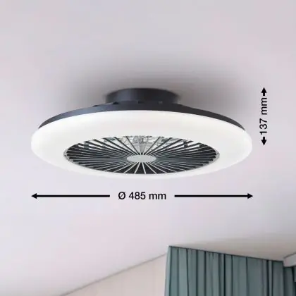 Beschrijving Brilliant Salerno Plafondventilator Kunststof Metaal Zwart 36W 4700lm - 830-865 CCT+RGB | 485mm - Afstandsbediening Dimbaar