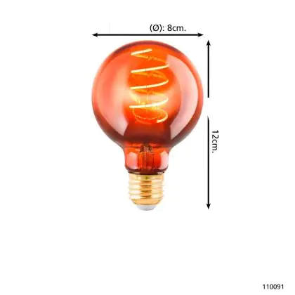Beschrijving Eglo LED Globe E27 Filament Amber 4W 30lm - 820 Zeer Warm Wit | Dimbaar - Vervangt 15W