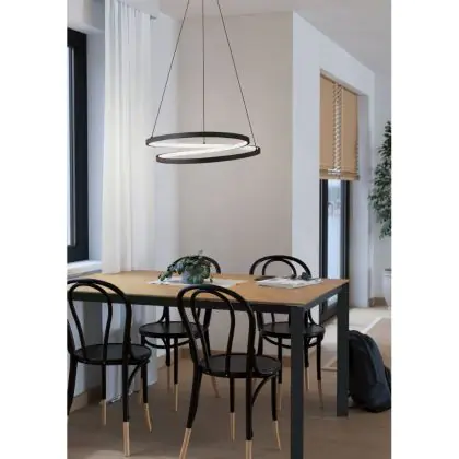 Beschrijving Eglo Pendelarmatuur Ruotale Staal Zwart 36W 4800lm - 830 Warm Wit
