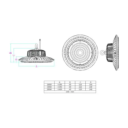 Beschrijving LED Highbay 200W 22000lm 90D - 840 Koel Wit | IP65