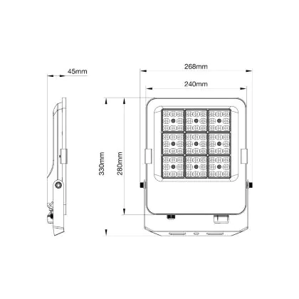 Deze LED breedstraler wordt gebruikt om (grote) oppervlaktes effectief te verlichten. Een hoge lichtopbrengst is hierbij van groot belang; hoe hoger de licht output, hoe groter de verlichte oppervlakte. Hierbij kun je denken aan het verlichten van erven, gevels, bouwplaatsen, sportcomplexen etc. De lichtopbrengst van deze LED floodlight is 5600 Lumen, met een Lumen Watt efficiëntie van lm/W. Dit houdt in dat het armatuur weinig energie verbruikt voor het licht dat deze genereert.