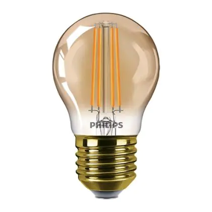 Deze lampen uit de Philips Classic serie hebben een retro look. Hiermee bedoelen we dat ze doen denken aan een oudere lamp, zoals een gloeilamp. Het LED filament geeft hetzelfde effect als dat van de koperdraad in een gloeilamp.