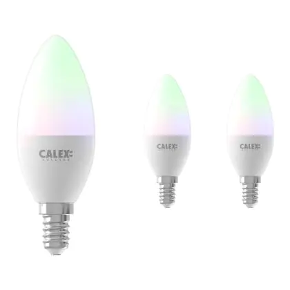 Beschrijving Voordeelpak 3x Calex Smart Kaars LED Lamp E14 5W 470lm 2200-4000K | Tuya Wifi - Color Ambiance + Afstembaar Wit