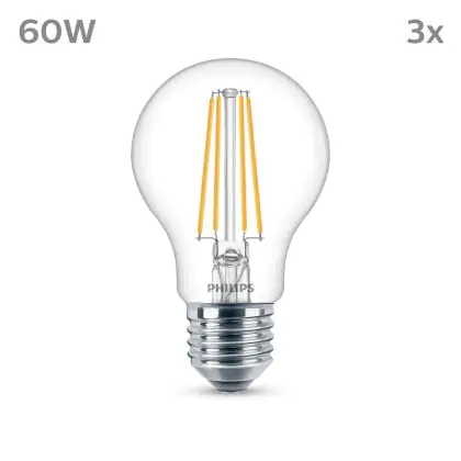 Beschrijving Voordeelpak 3x Philips Lamp LED E27 Peer Filament Helder 7W 850lm - 840 Koel Wit