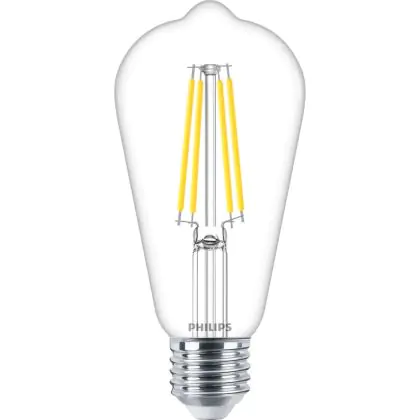 Naast de kleurtemperatuur speelt het uiterlijk van de lamp een belangrijke rol. Ga je voor mat glas of liever helder/gekleurd glas, waardoor je het LED filament (de oranje kooldraad) goed kunt zien? Heb je ook al nagedacht over de vorm en grootte? Deze E27 lamp heeft als vorm: Edison. Ten slotte heb je bij ons een zeer ruime keus aan dimbare E27 LED lampen. Hierbij heb je een LED dimmer nodig. Wil je extra informatie over E27 LED? Lees dan onze blog: Hoe vind ik de juiste E27 lamp?